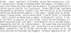 Незаконна окупація АР Крим та м.Севастополя. Порушення міжнародного права та злочинні діяння Російської Федерації. Тортури щодо сміливців з іншою точкою зору. Та нахабні російські лозунги, що роз’єднували, підбурювали та сварили. Родини. Друзів. Коханих. І цілі країни. Адже тепер Крим став особливим і на міжнародній арені.